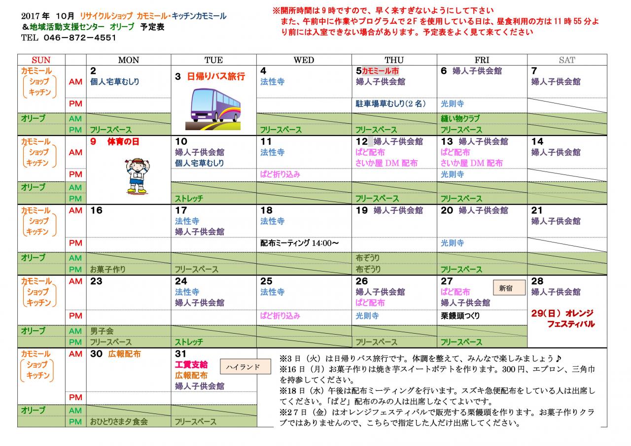 2017年9月カモミール予定表