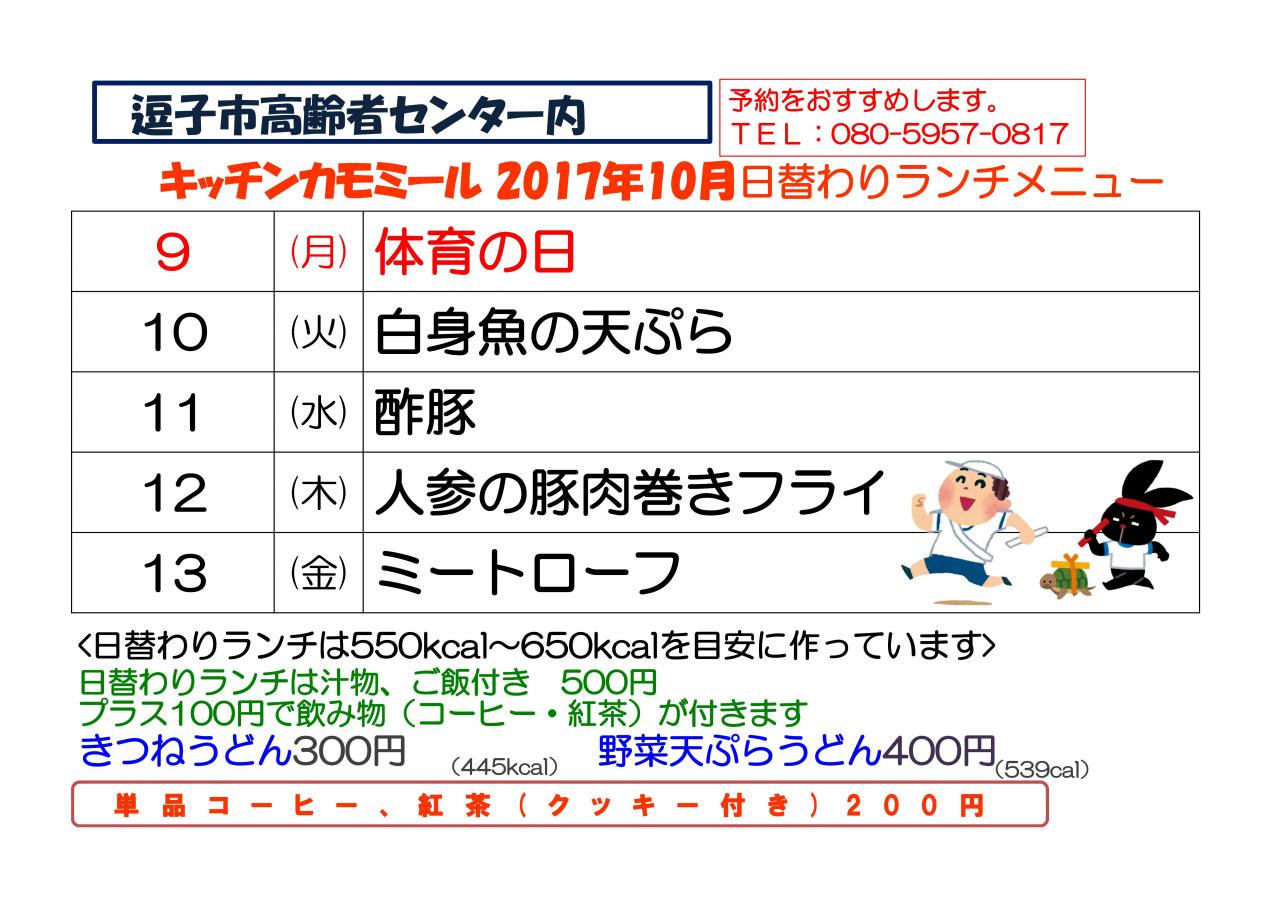 キッチン日替わりランチ10/2~10/6