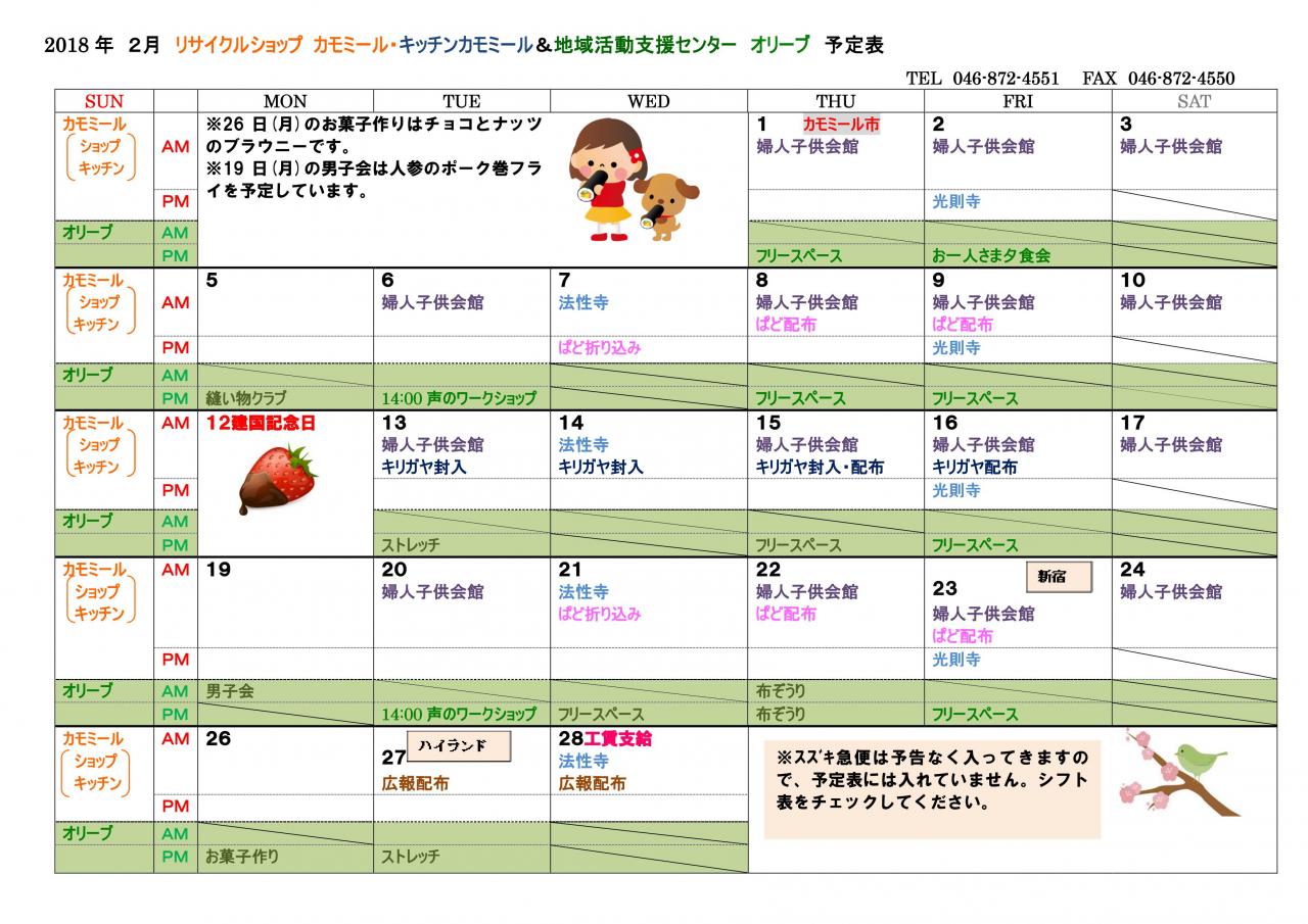 2018年 2月予定表