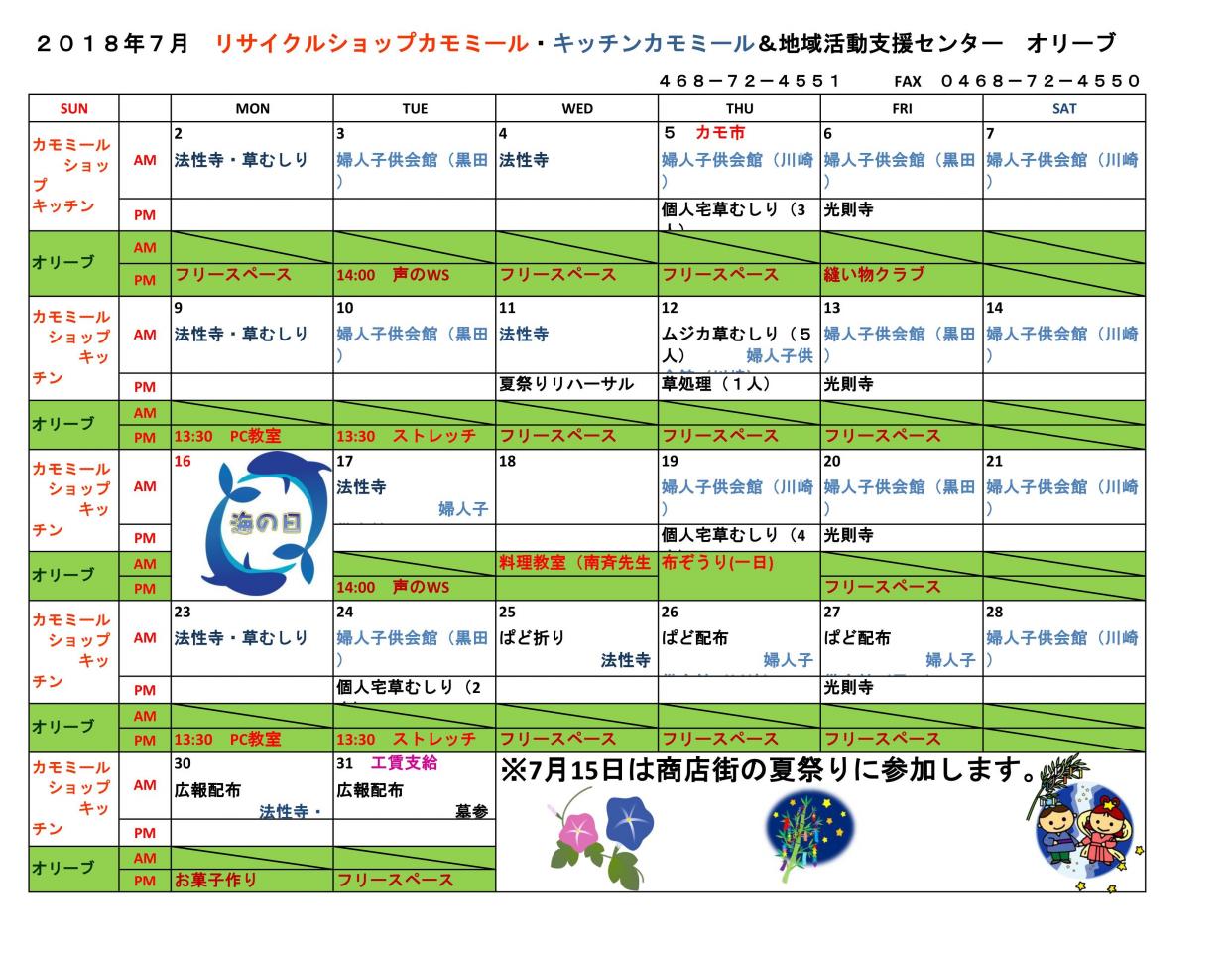 2018年 7月予定表