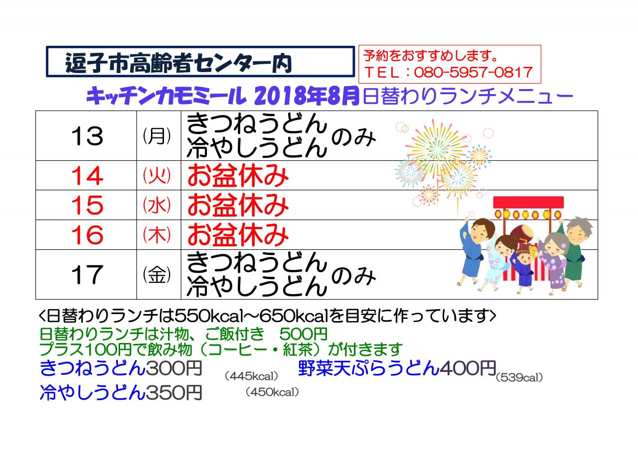 2018年8月キッチンメニュー