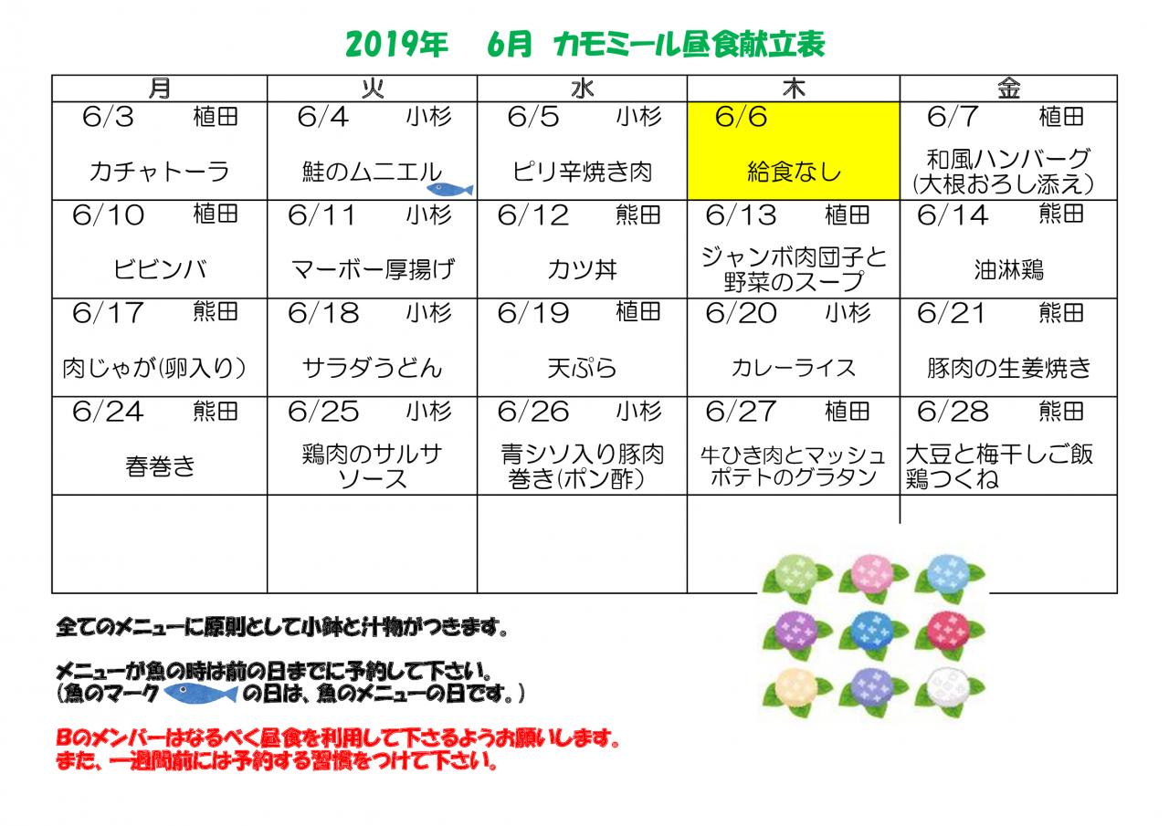 2019年6月 昼食献立表