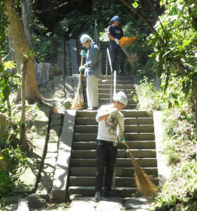 水曜日と金曜日には、2か所のお寺の外掃除にグループで出かけていきます。個人宅の草むしりの仕事や鎌倉婦人子供会館の清掃、市の広報誌や地域の情報誌、商工会議所のダイレクトメールなどの配布の仕事、さらには地元の企業のダイレクトメールの袋詰め作業などの外注の仕事も行っています。
