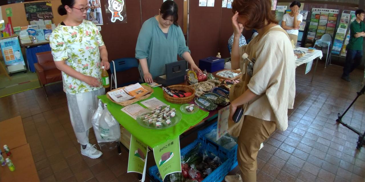 下の写真は、前回6月のふれあいマーケットの様子です。