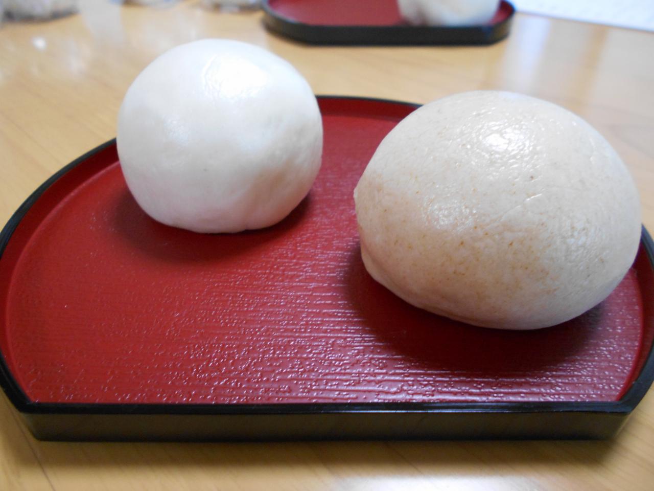 右がきな粉まんじゅう、左がミルクまんじゅう。