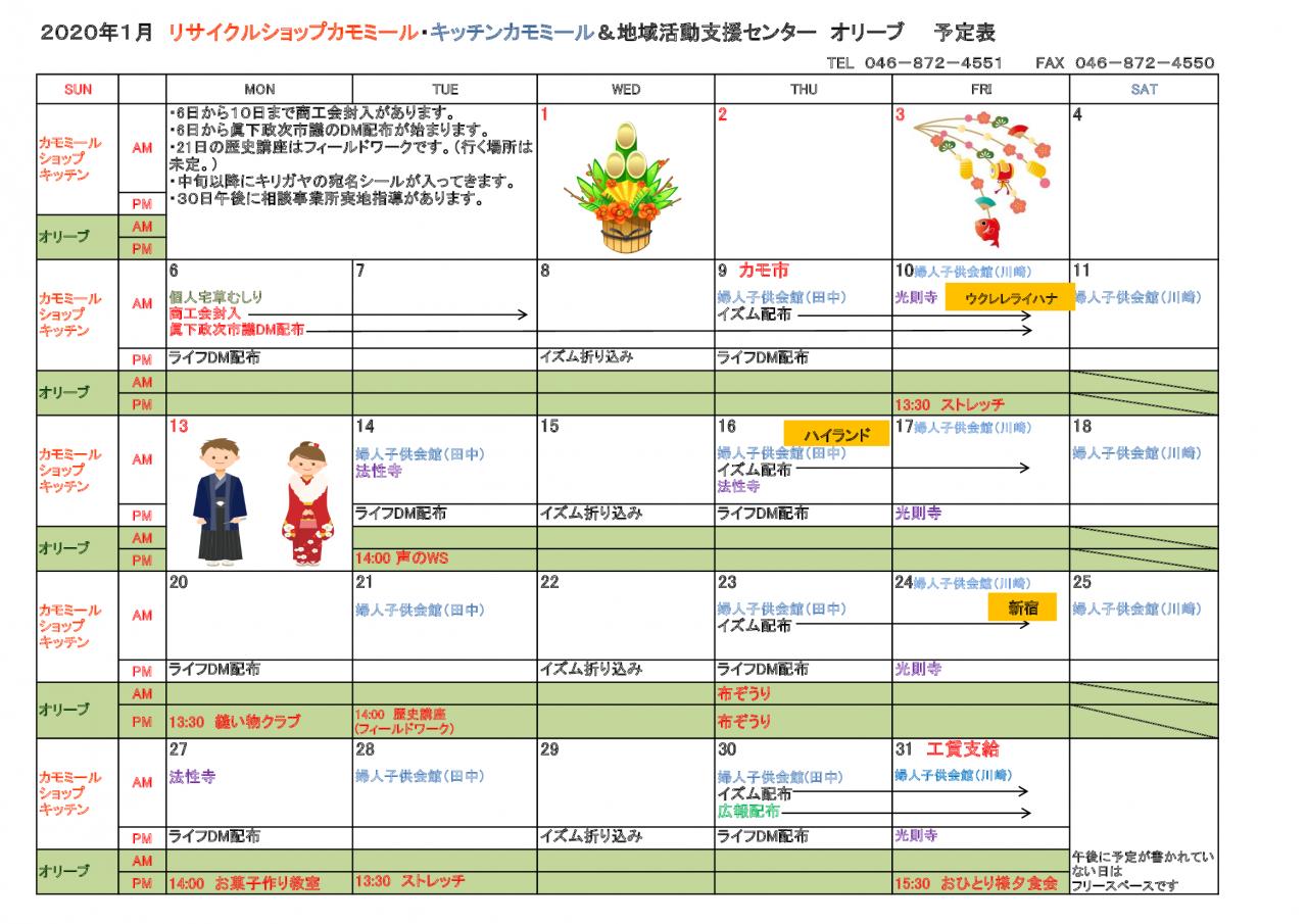 2020年 1月予定表