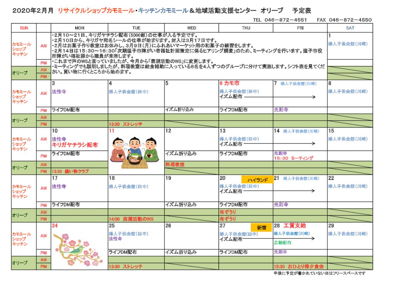 2020年 2月予定表