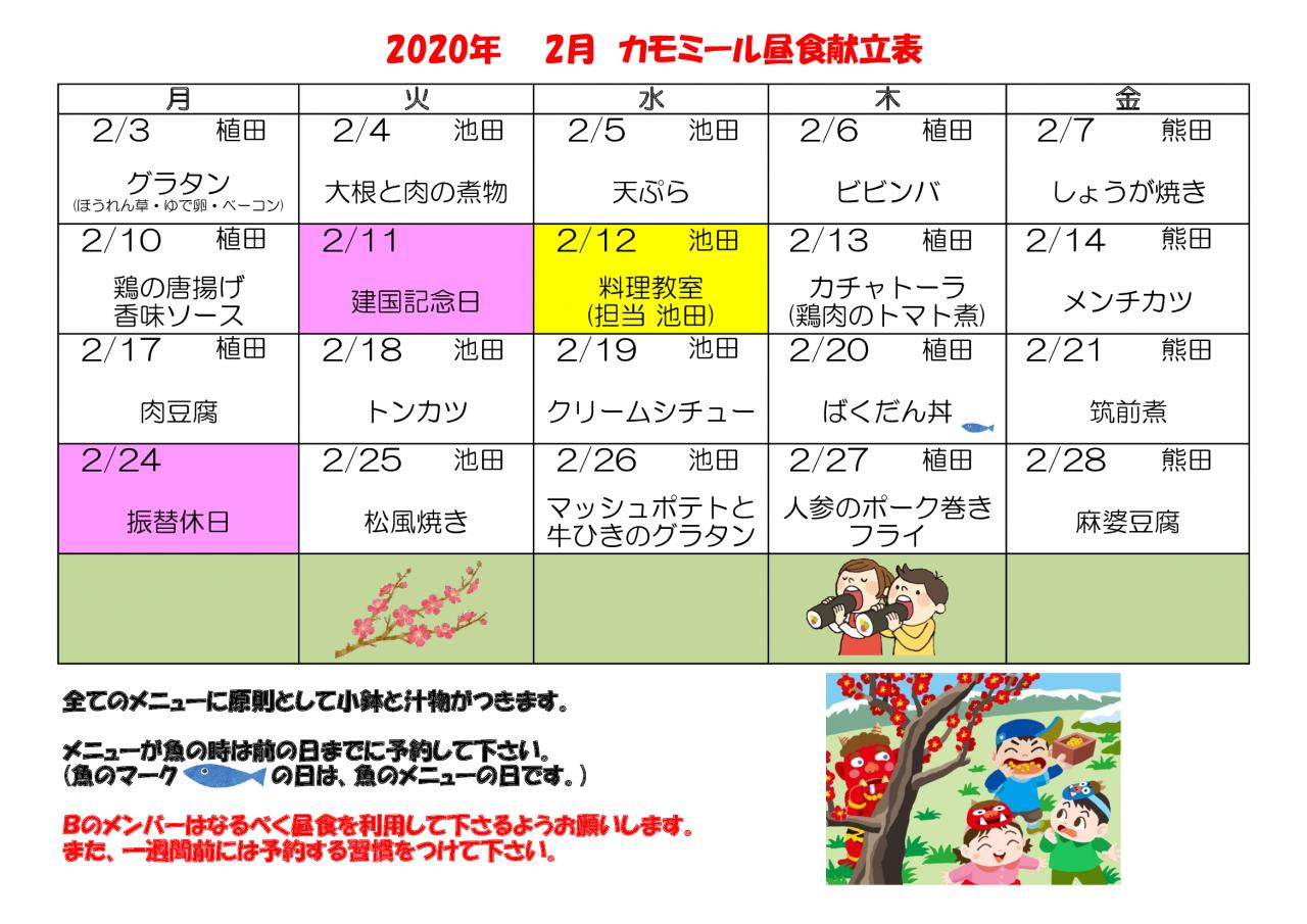 2020年 2月昼食献立表