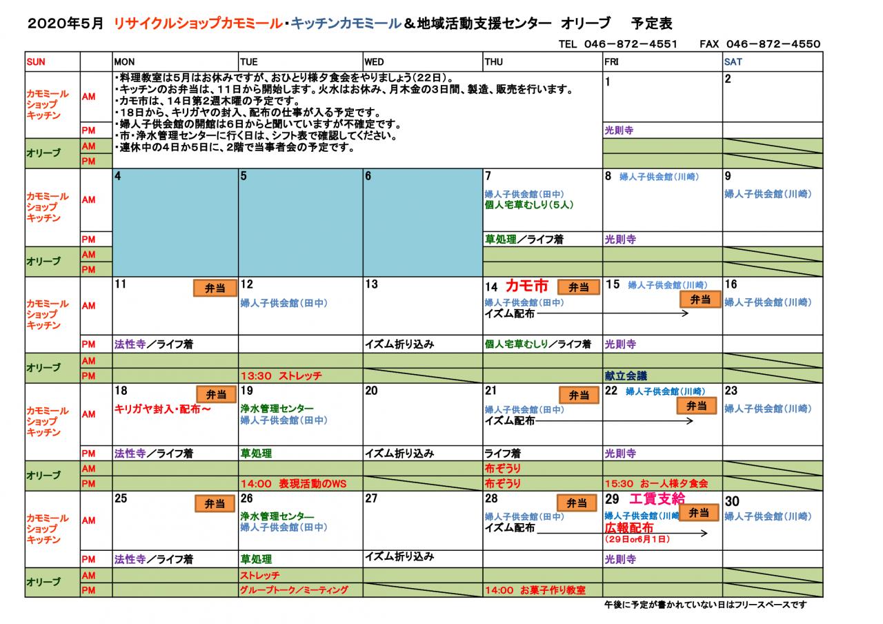 2020年 5月予定表