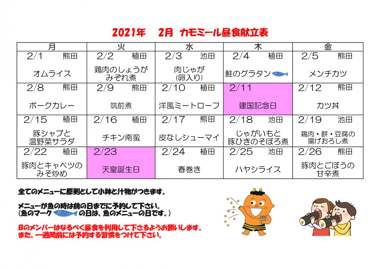 キッチンカモミールの職員から皆様への メッセージです。 それと2月の弁当をピックアップです♪