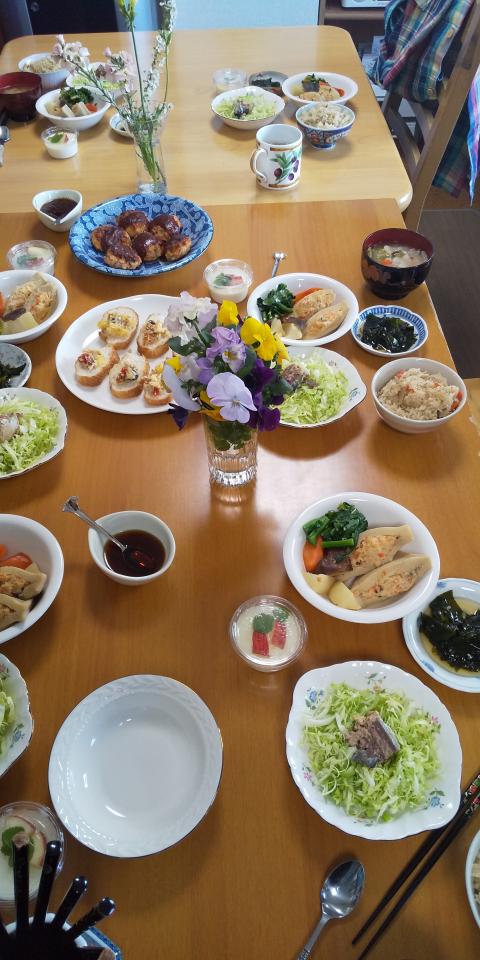 メニューは、参加メンバーのリクエストで、鶏の炊き込みご飯、高野豆腐の肉詰めなどでした。