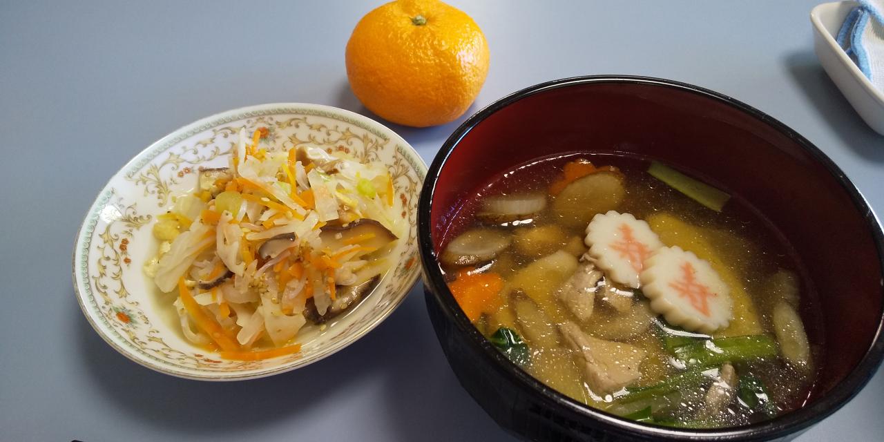 通所メンバーも、今日から仕事始め📝午後はお寺のお掃除もあります。今日の給食はお雑煮、七福なます、みかん🍊でした。お正月のお腹に優しい味でした💕午後の仕事も頑張れそうです😍