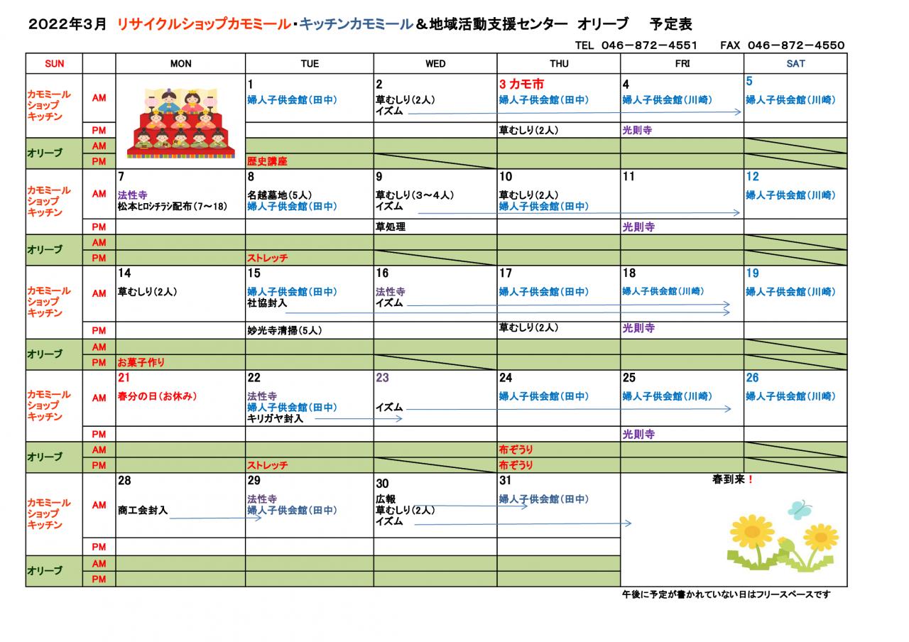 2022年 3月予定表