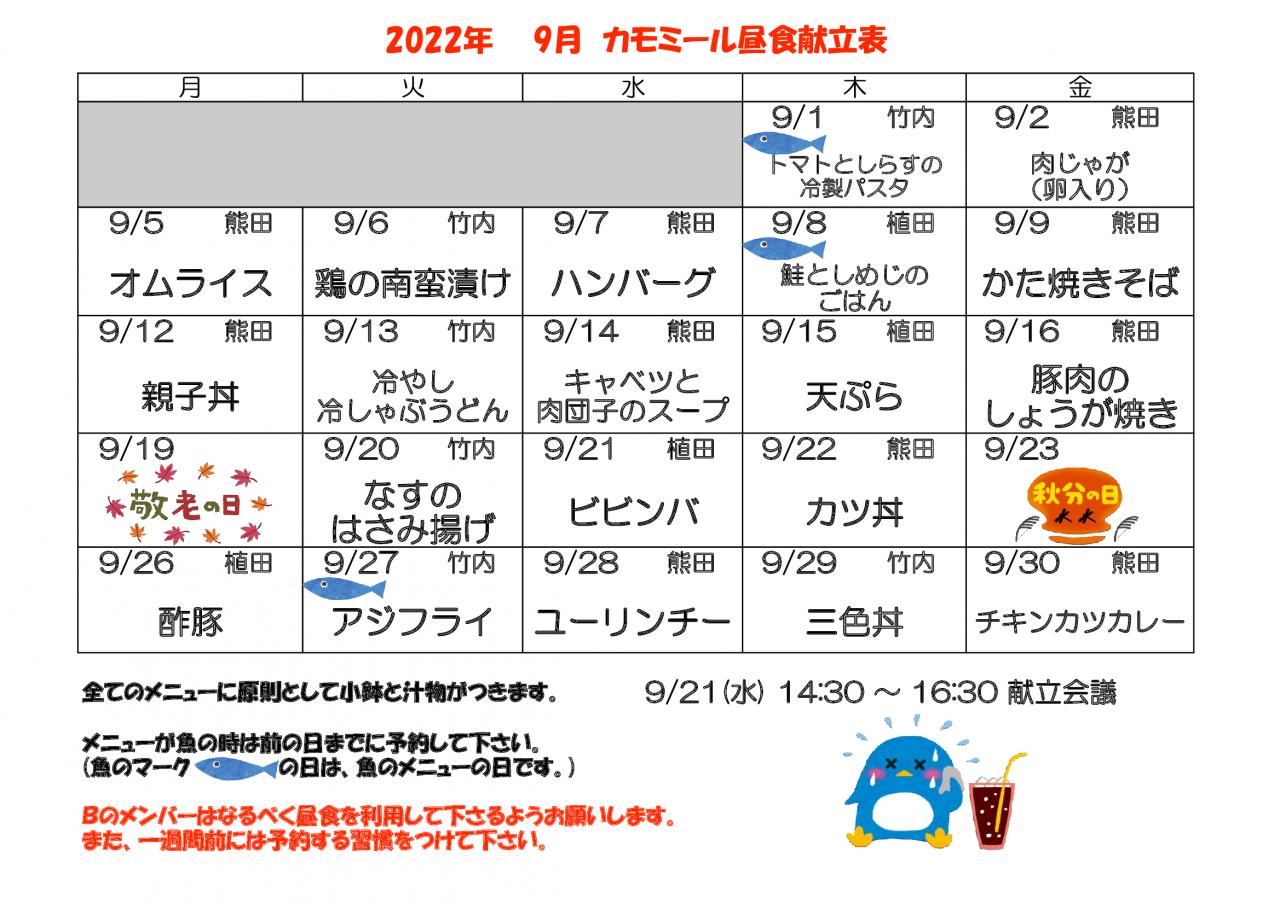 2022年 9月昼食献立表