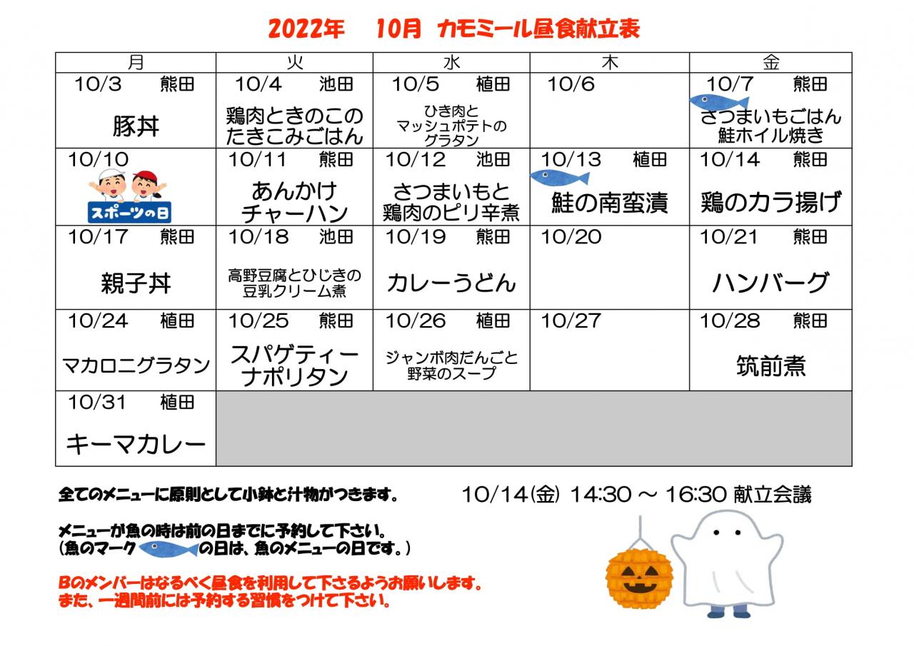 2022年 10月昼食献立表