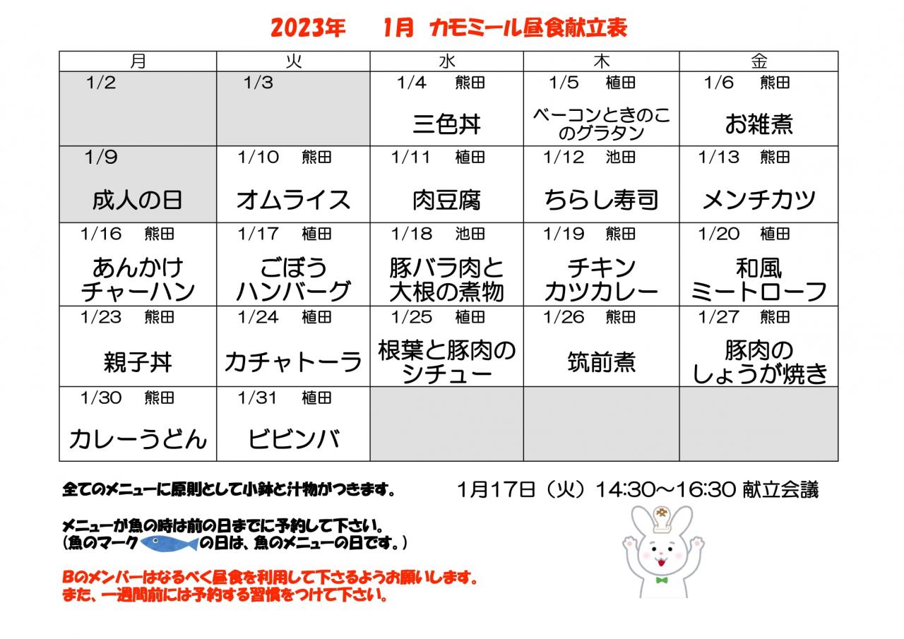 2023年 1月昼食献立表