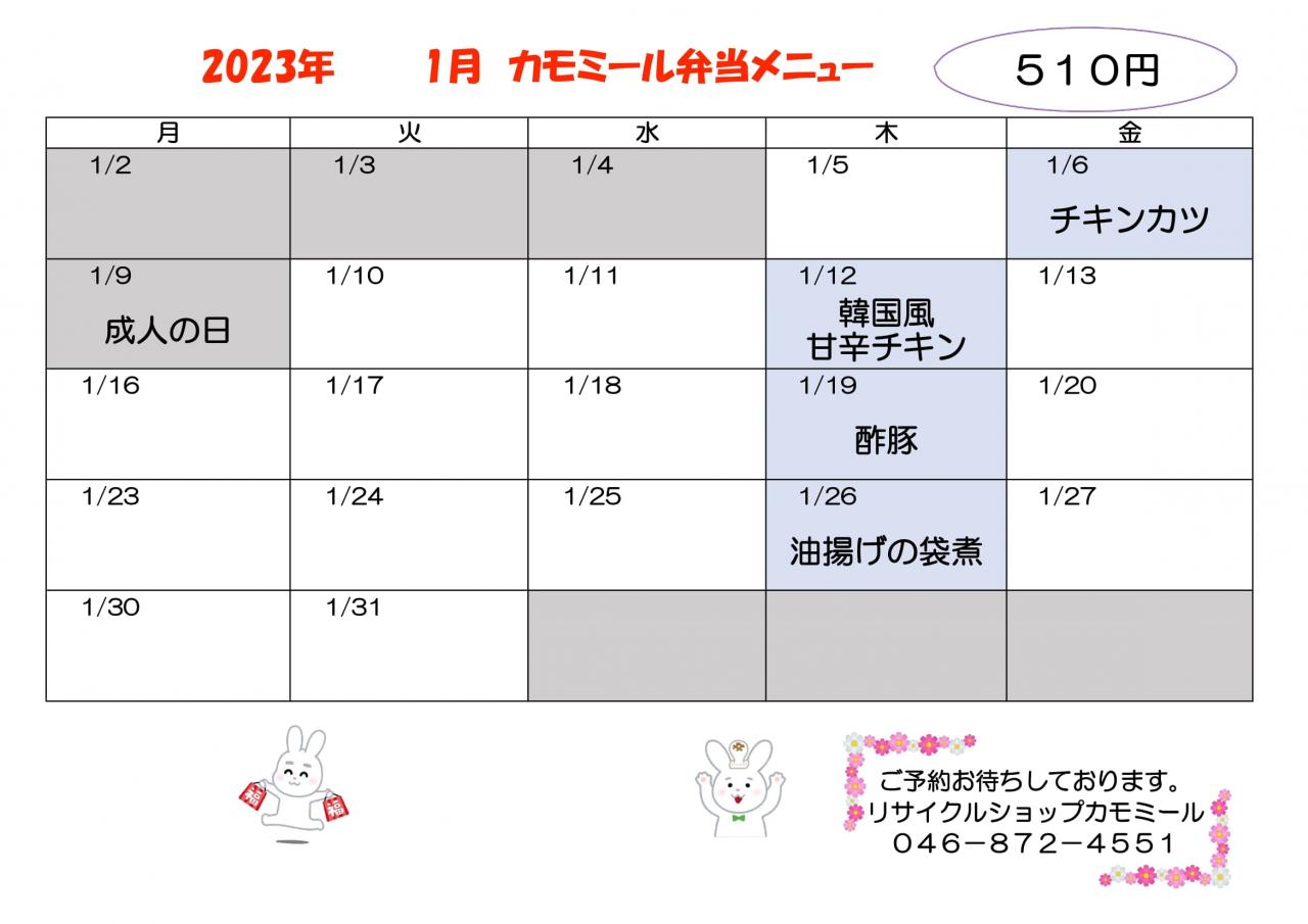 1月 お弁当メニュー