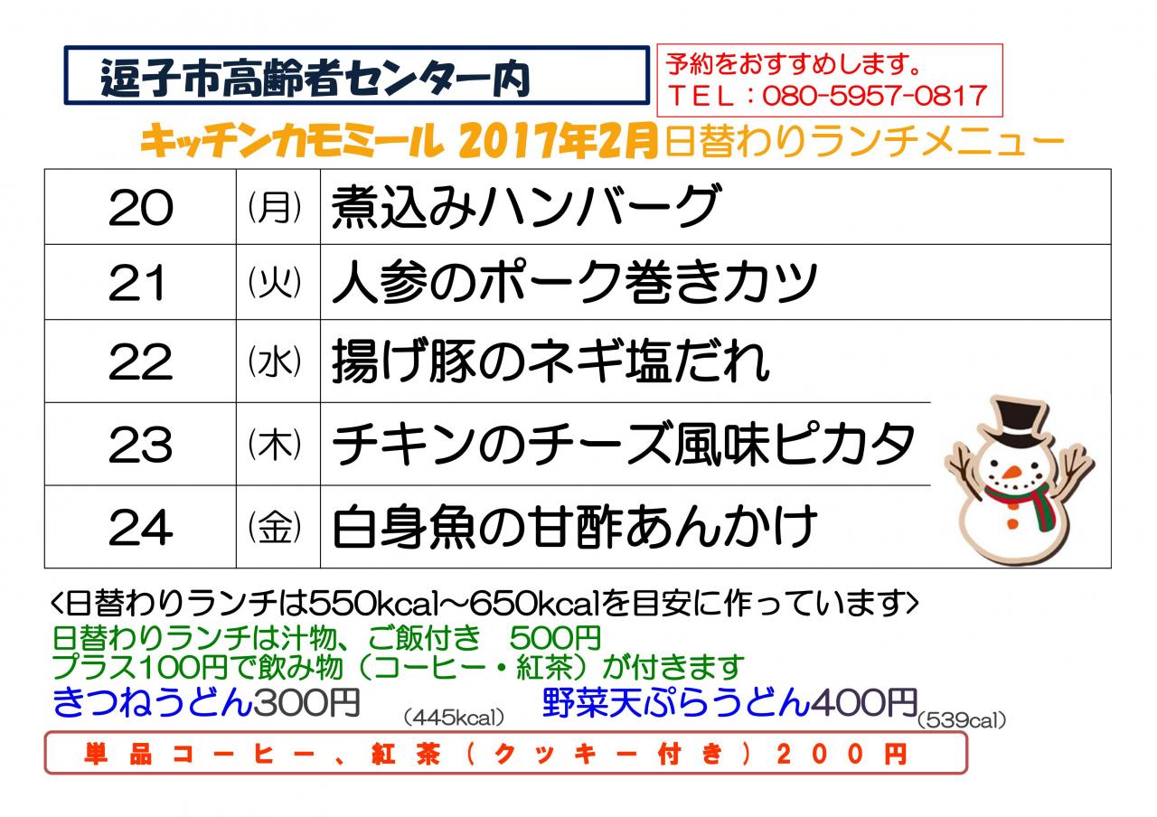 キッチンカモミール2017年2月メニュー