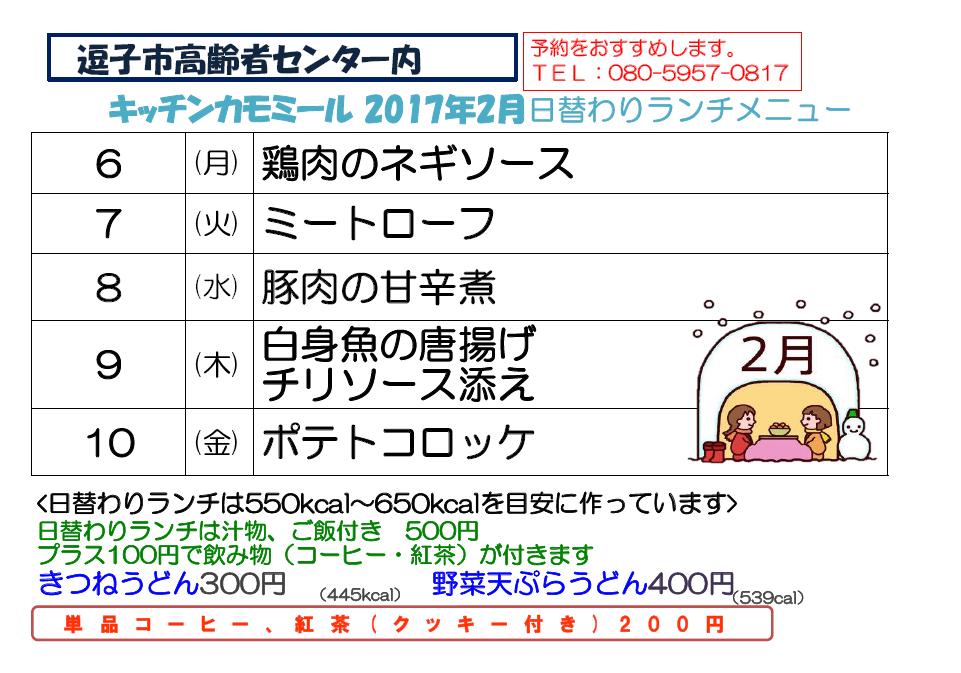 キッチンカモミール2017年2月メニュー