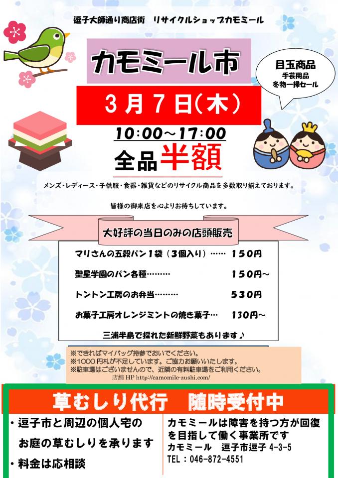 スマイルジョインズ 2024年 GWイベント -粉づくし、粉まみれ、粉もの大会- 開催日時 5月6日(月・祝)10:30~15:00 場所 リサイクルショップカモミール(逗子市逗子4丁目3−……
