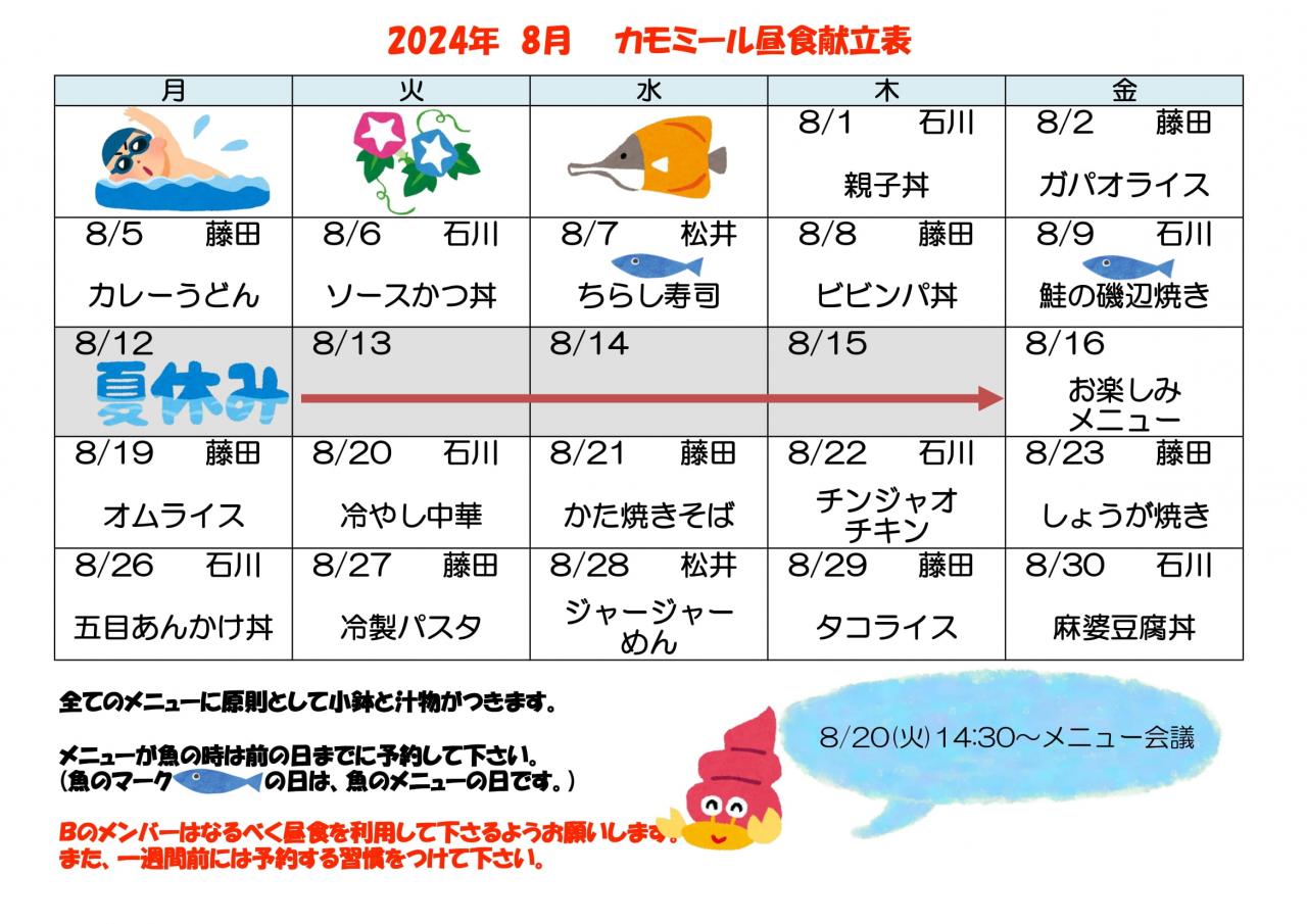 2024年 8月昼食献立表
