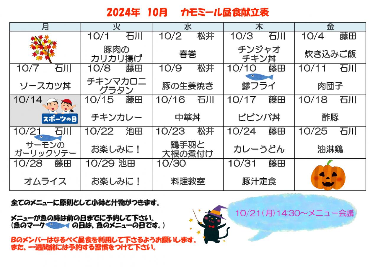 2024年 10月昼食献立表