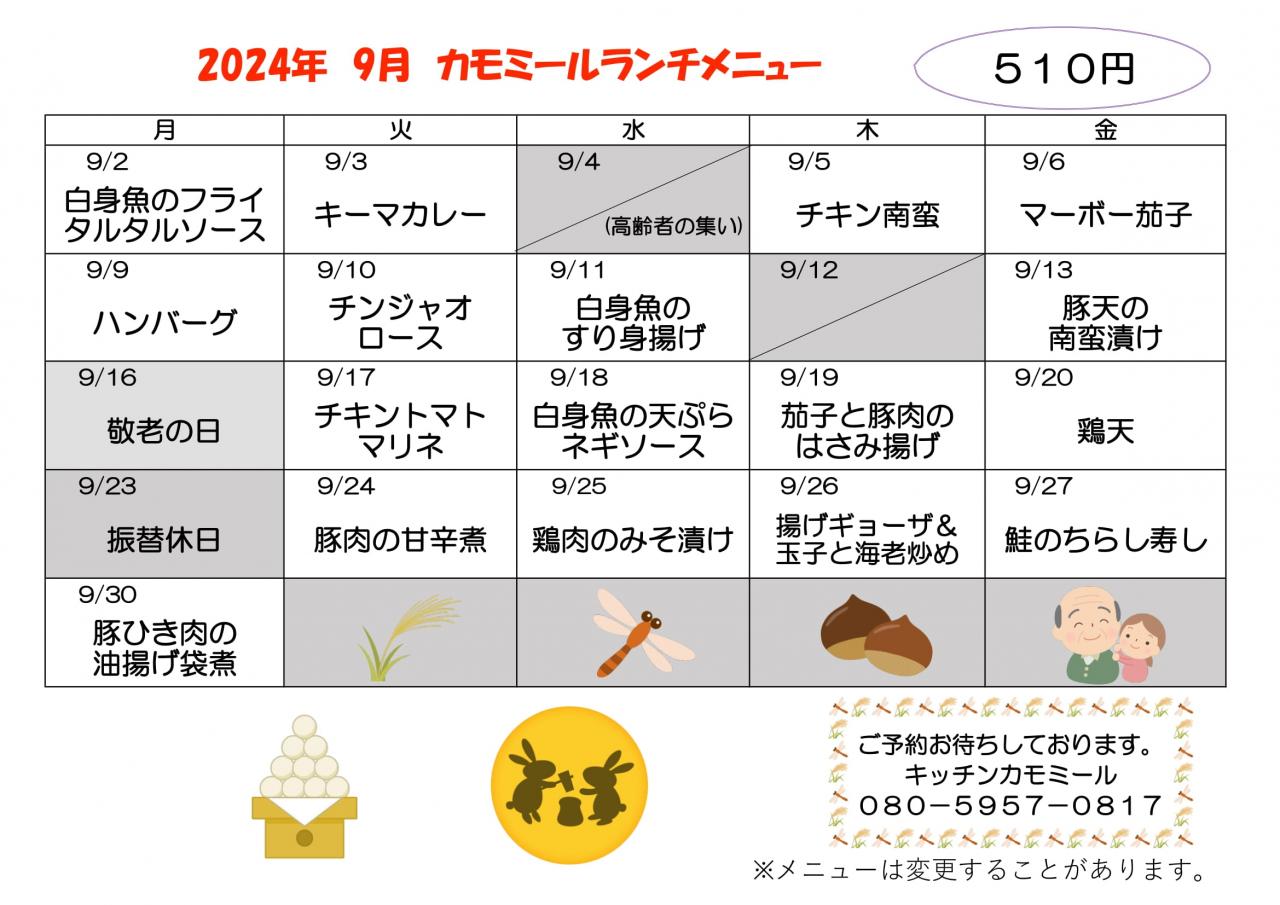 2024年 9月キッチンランチメニュー