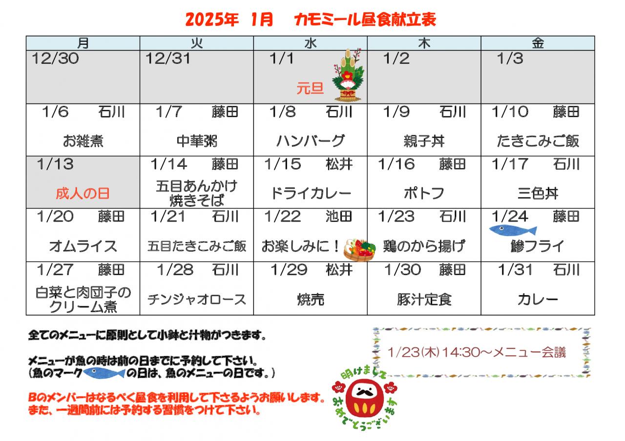 2025年 1月昼食献立表