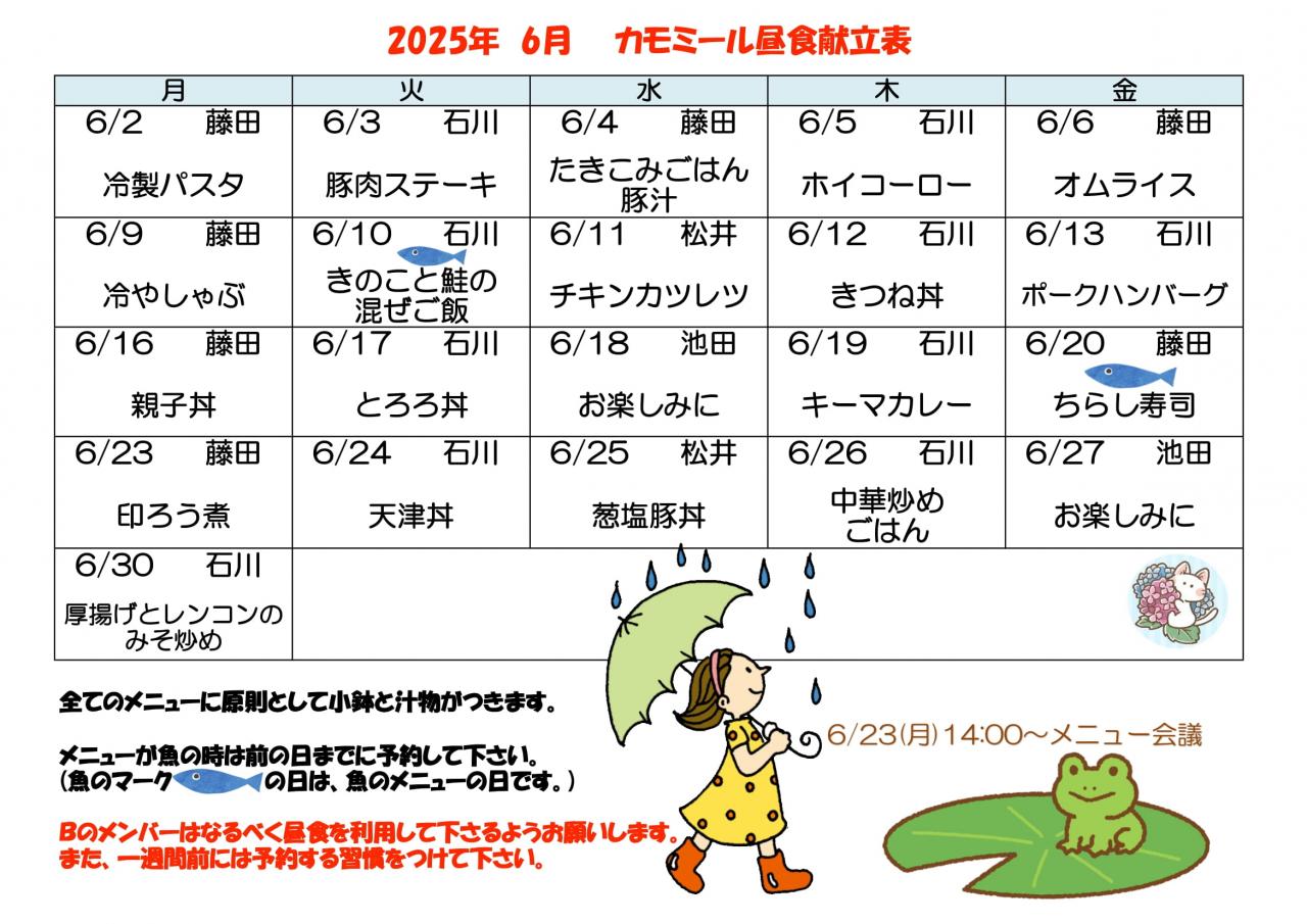 2025年 6月昼食献立表