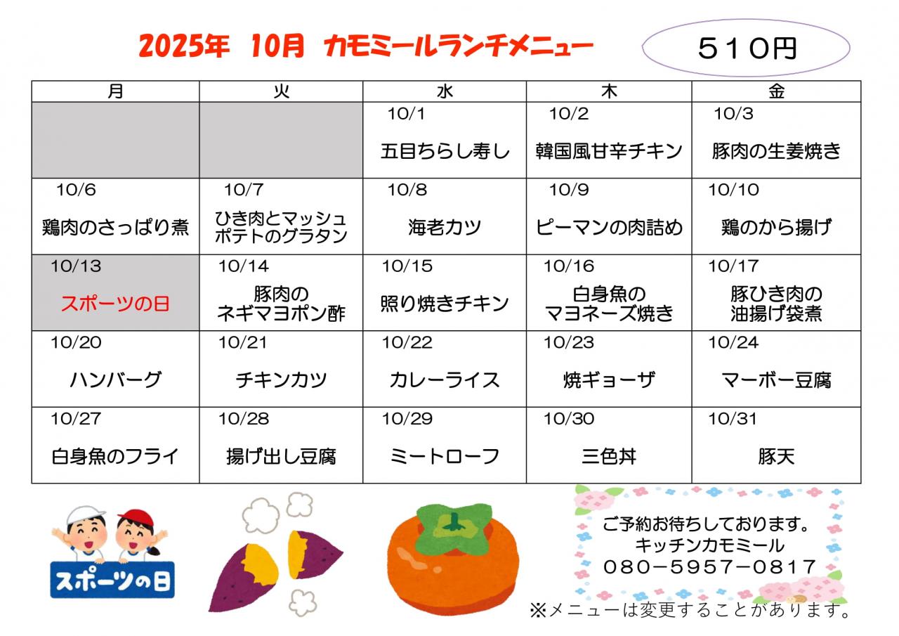 2025年 10月キッチンランチメニュー