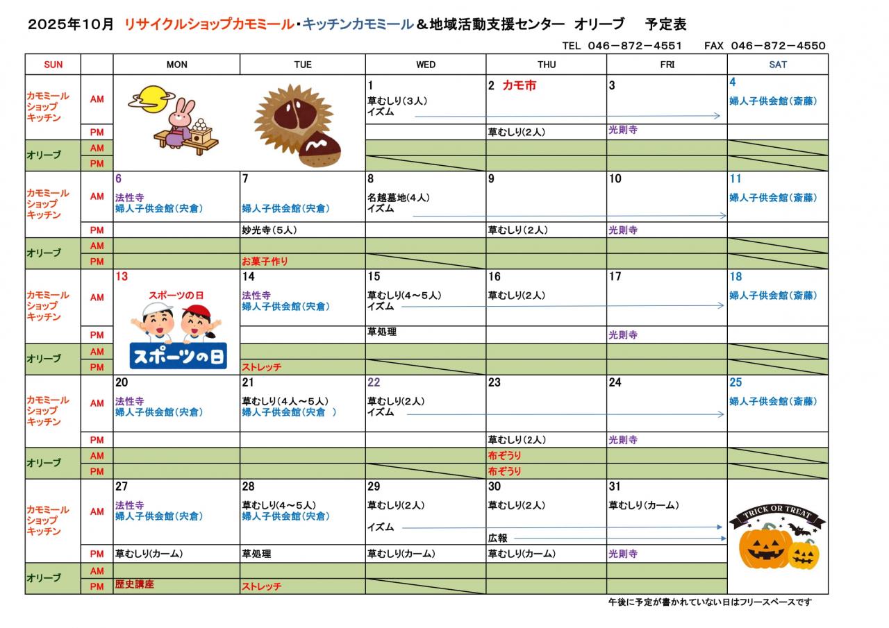 2025年 10月予定表