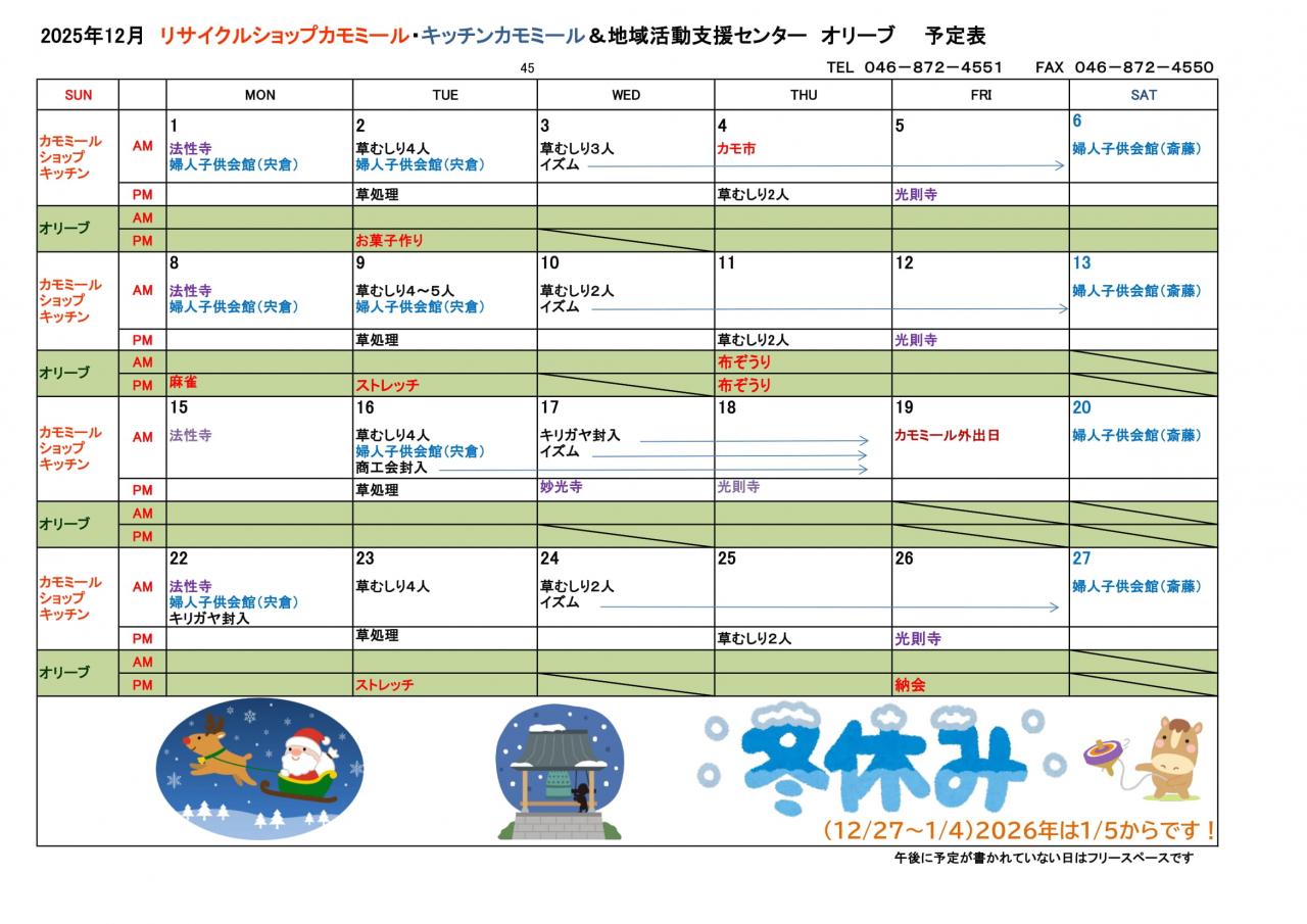 2025年 12月予定表