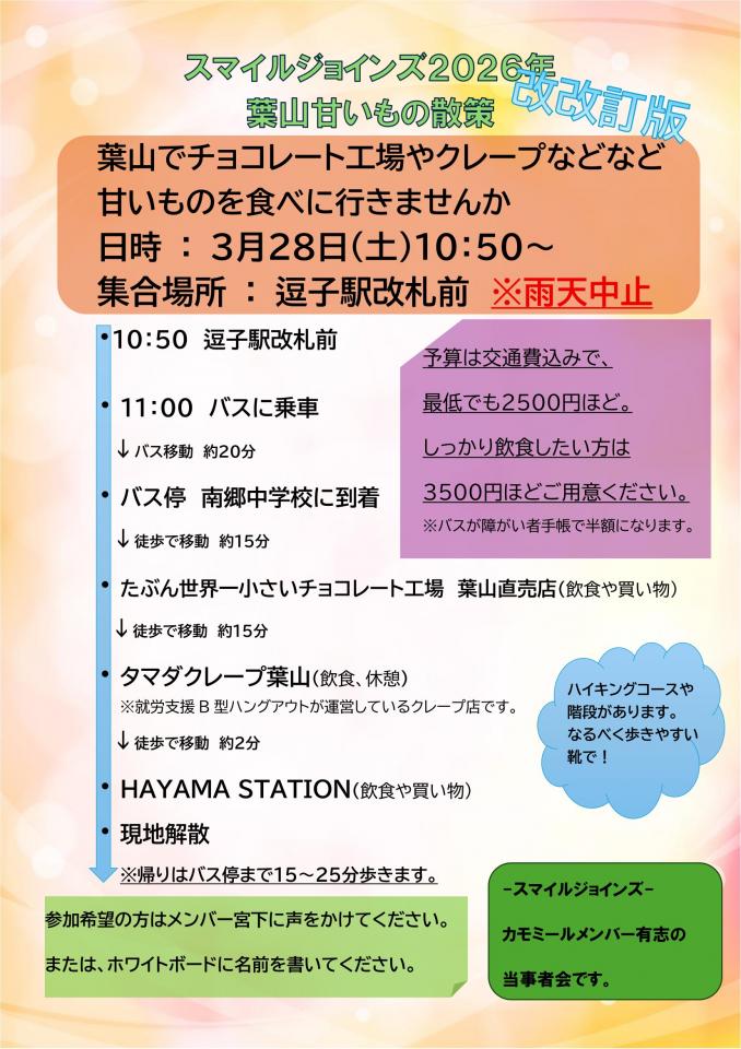 スマイルジョインズ 2026年 葉山甘いもの散策のお知らせ