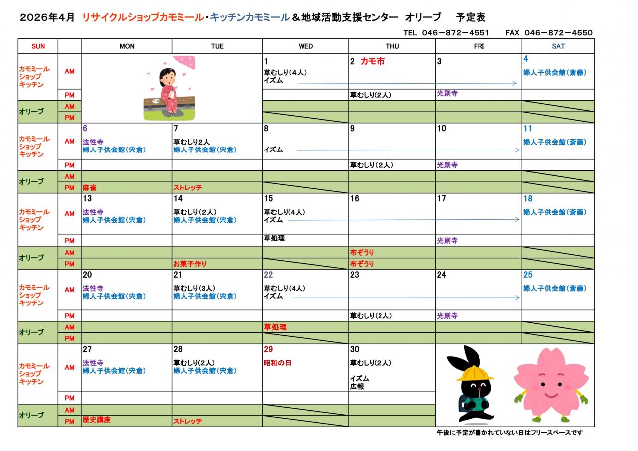 2026年 4月予定表