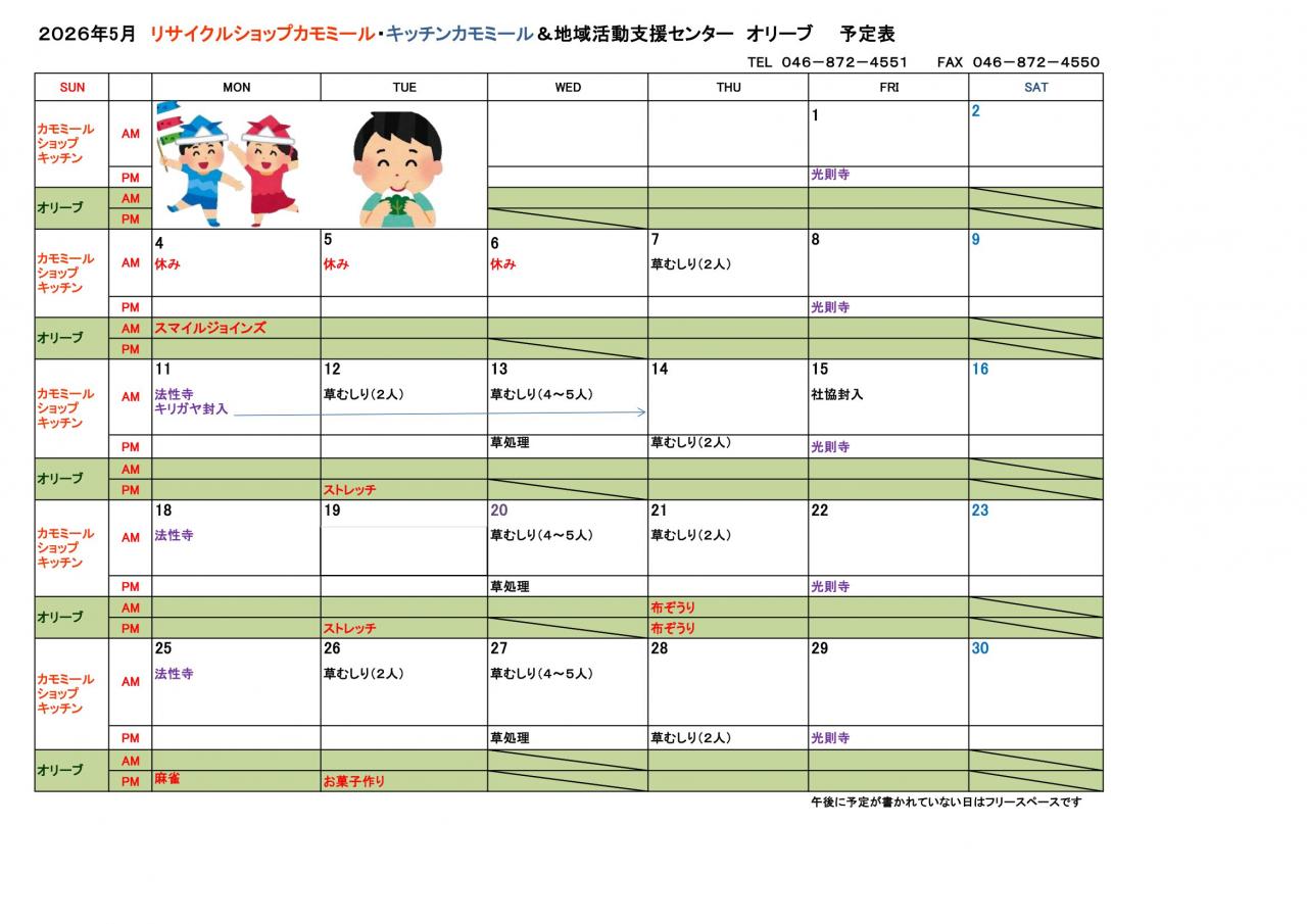 2026年 5月予定表