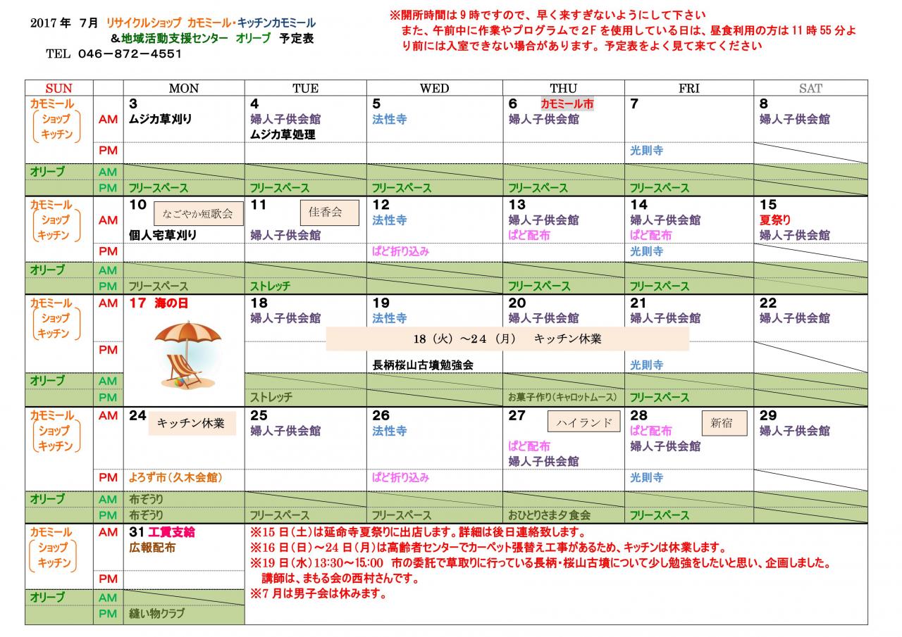2017年7月予定表