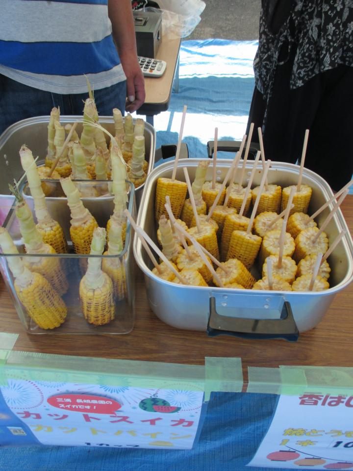 毎回好評の鶏の唐揚げと焼きトウモロコシに加え、新たにカットスイカとカットパイナップル、メンバーの宮下さんが運営する工房オレンジミント特製のプリンとコーヒーゼリーを販売しました。去年の夏祭りは豪雨に見舞われて大変でしたが、今年はよく晴れたので悪天候による負担もなく気持ちよく参加できました。