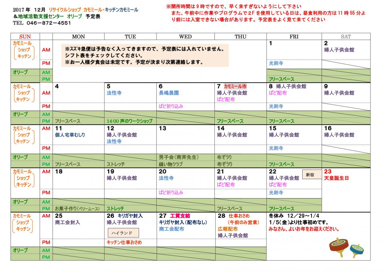 2018年 12月予定表