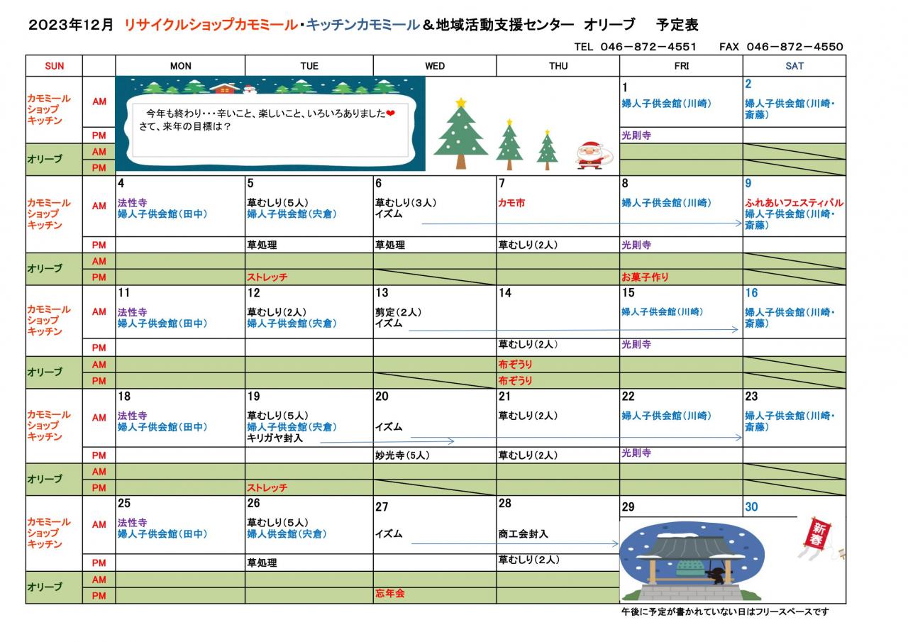 2023年 12月予定表
