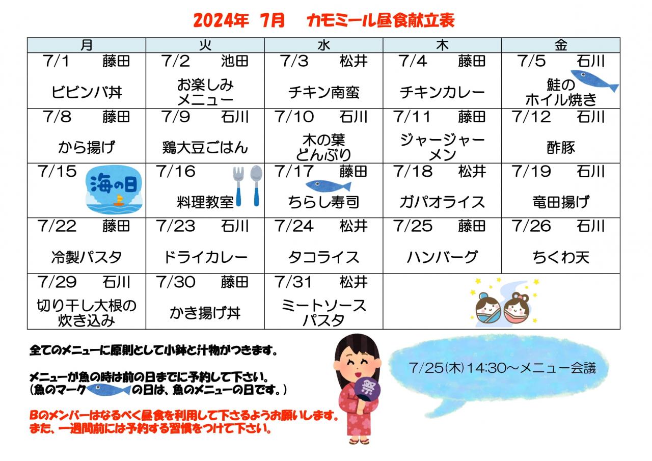 2024年 7月昼食献立表