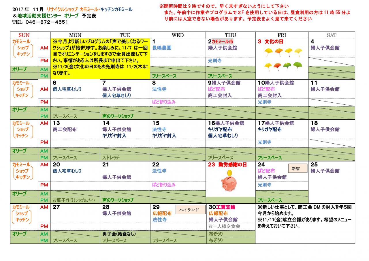 11月予定表