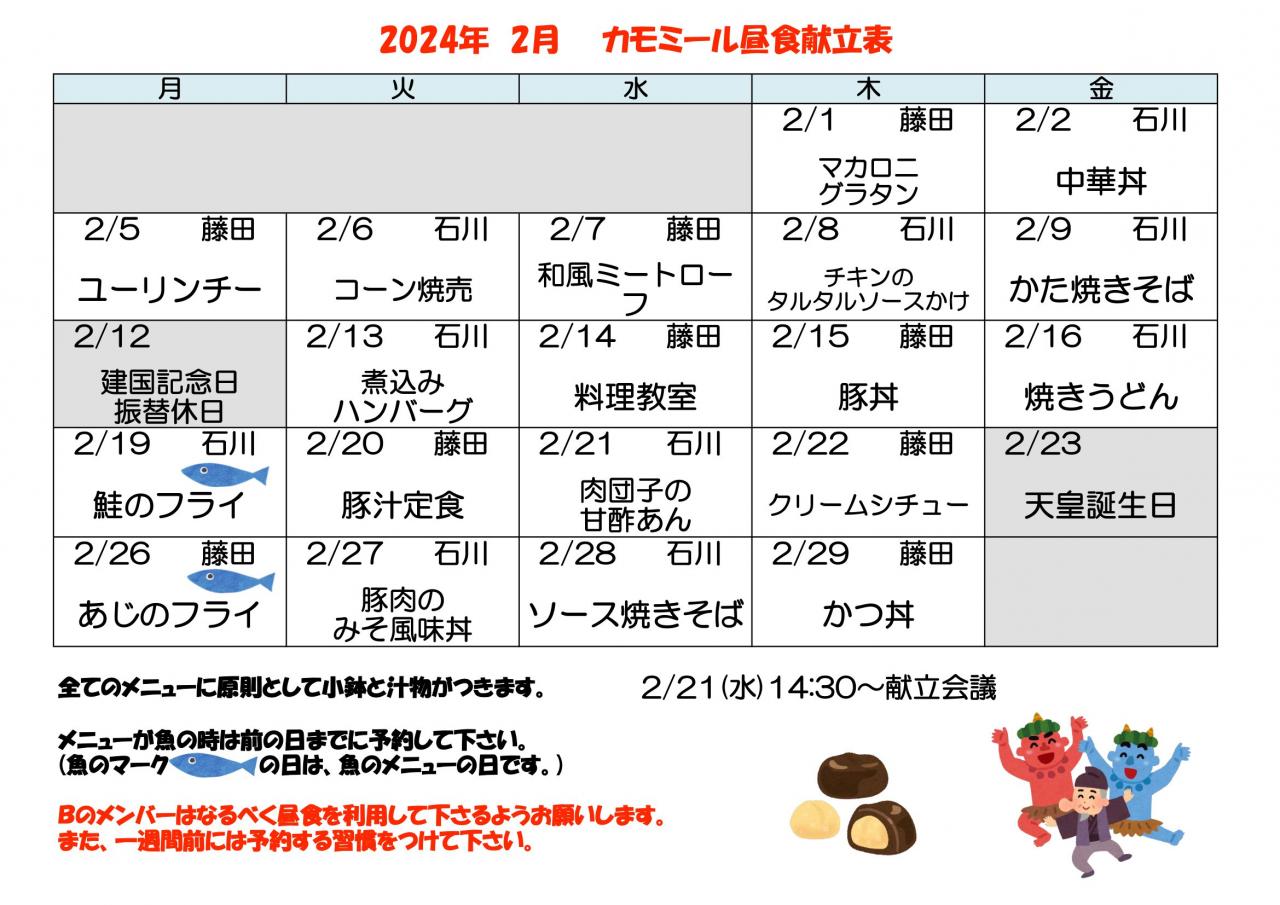 2024年 2月昼食献立表