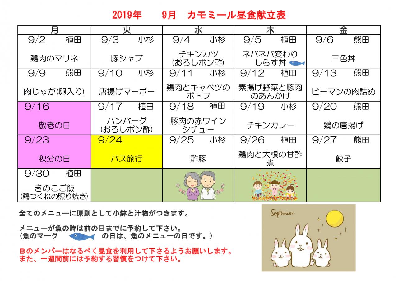 2019年 9月昼食献立表